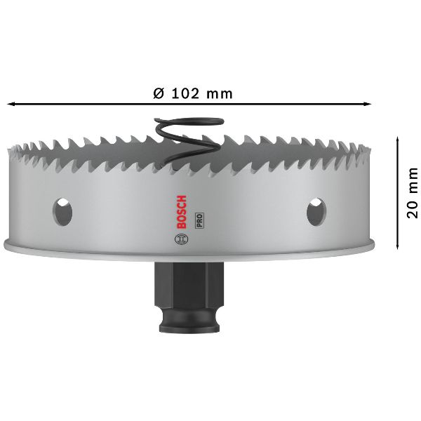 Dure jusqu'à 2 fois plus longtemps qu'une scie trépan HSS M3 standard - Pour couper de la tôle, il vous faut une scie trépan suffisamment résistante pour attaquer l'acier dur tout en étant capable de réaliser des coupes nettes et efficaces dans les tuyaux. La PRO Sheet Metal coche toutes ces cases ; c'est l'un des accessoires favoris des métalliers professionnels. Nous avons développé la scie trépan PRO Sheet Metal pour les professionnels qui ont besoin de couper du métal. Ses dents sont en HSS affichant une teneur de 8 % de cobalt pour assurer leur tranchant et leur résistance. Son corps est solide et résistant, et elle est dotée d'un ressort d'éjection pratique qui vous aide à retirer facilement les carottes de matériau. À utiliser avec le montage sans clé Bosch Power Change Plus : offrant précision et robustesse