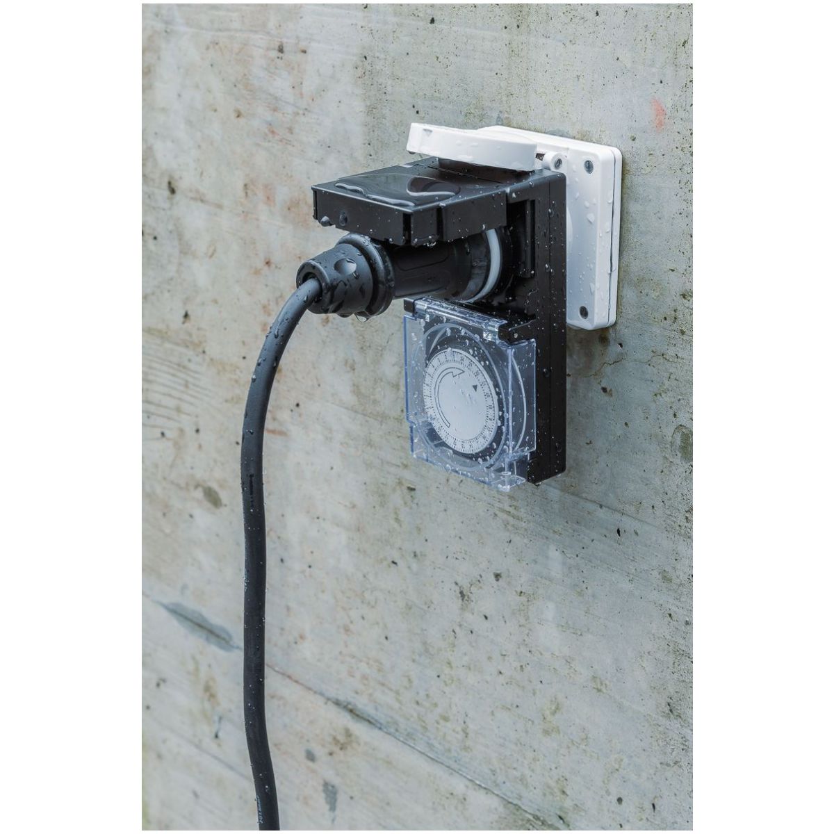Ce programmateur horaire mécanique avec indice de protection IP55 est protégé contre les jets d'eau et convient parfaitement à une utilisation en extérieur. Le programmateur intégrant un programme 24 heures est doté d'un grand couvercle de protection transparent et permet de régler jusqu'à 96 segments de commutation par jour. L'intervalle de commutation minimal est de 15 minutes. Le programmateur est très facile à utiliser. Pour votre sécurité, la prise est équipée d'une protection intégrée contre les contacts accidentels.